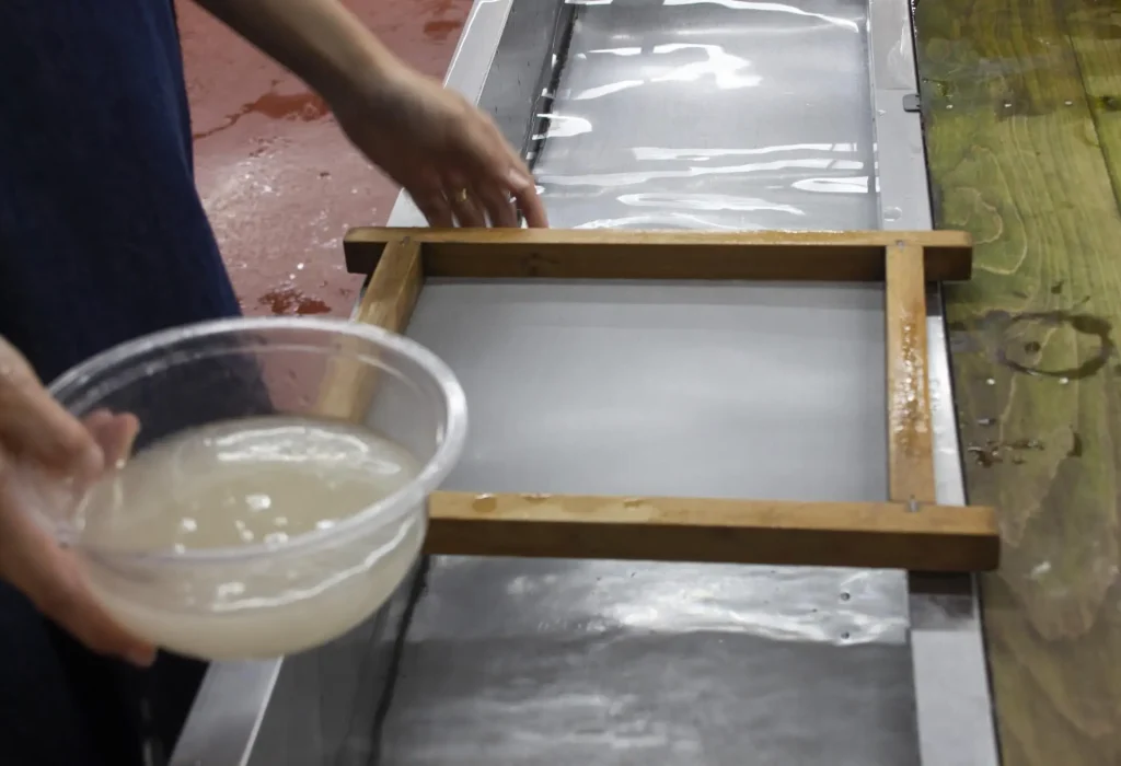 「流し漉き(ながしずき)」と呼ばれる日本独自の技法により、楮の繊維が整然と絡み合い、薄くてムラのない上品な風合いに仕上がります。そして、その技術は「和紙:日本の手漉和紙技術」としてユネスコ無形文化遺産に登録されています。
