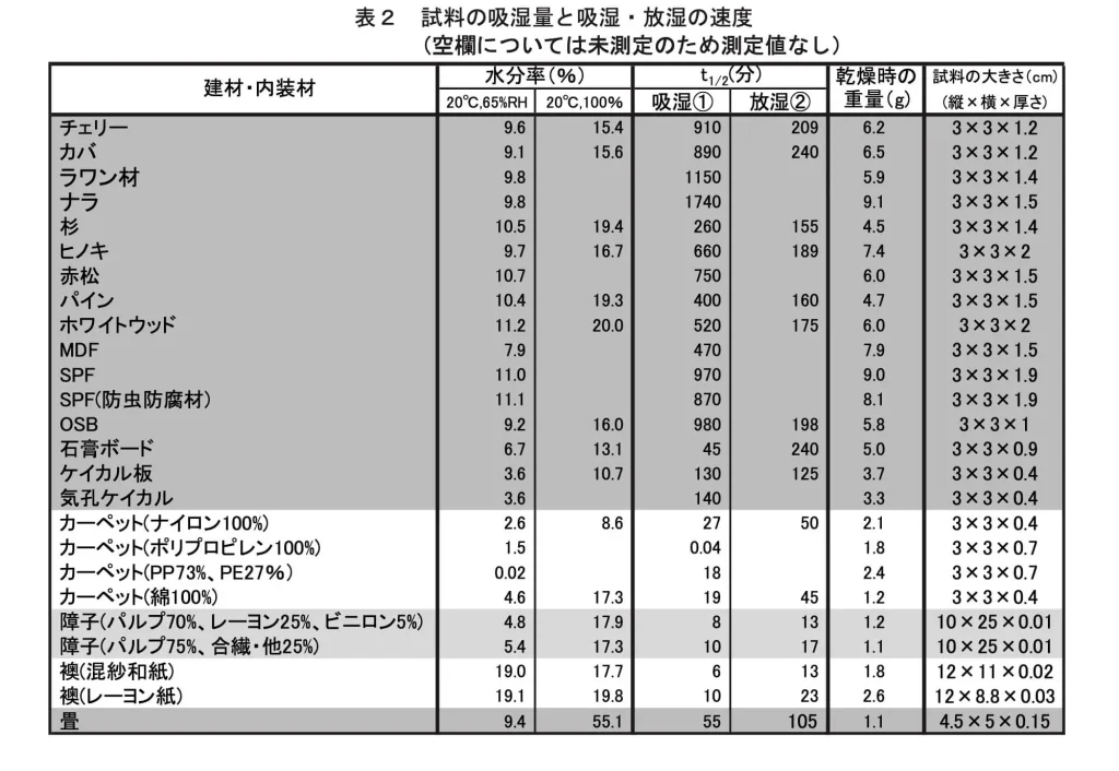 実践女子大学が行なった住宅建材の吸脱湿の研究では、ふすまなどの紙系が多く使われた部屋は吸湿と脱湿のどちらの速度も早いことが証明され、特にふすまは調湿性に優れていることから、日本の気候に適しているということが明らかにされています。