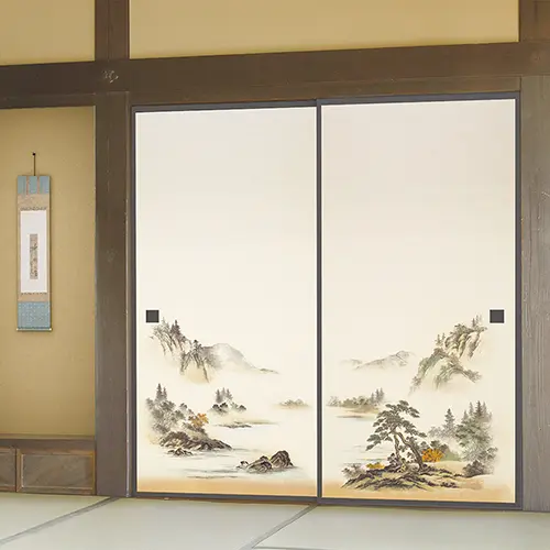 襖(ふすま)とは、和室で使われる引き戸の一種で、木の骨組みの両面に和紙や織物などの襖紙(ふすまがみ)を貼り、縁(ふち)と引手(ひきて)を取付けた建具のことを指します。